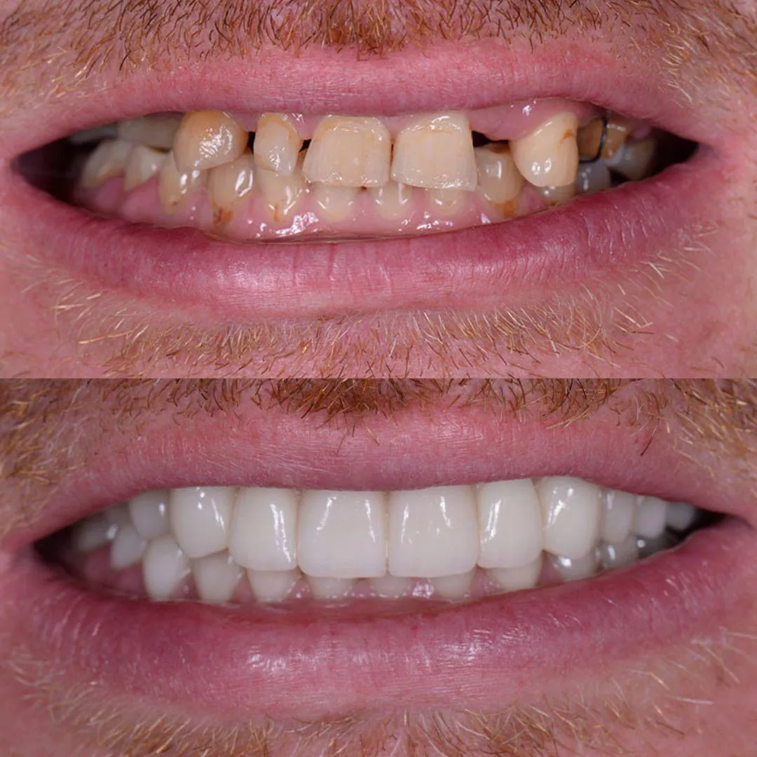 Full arch dental implants provide patients with brand new teeth by utilizing a permanent, titanium-reinforced bridge that can be secured with four to six dental implants. This allows us the flexibility to strategically place the implants in the areas in which the bone is most dense, reducing our need for bone grafting and other supporting treatments. Please keep in mind that we can help people in nearly any situation because of our team approach to Full Mouth Implant Cases.